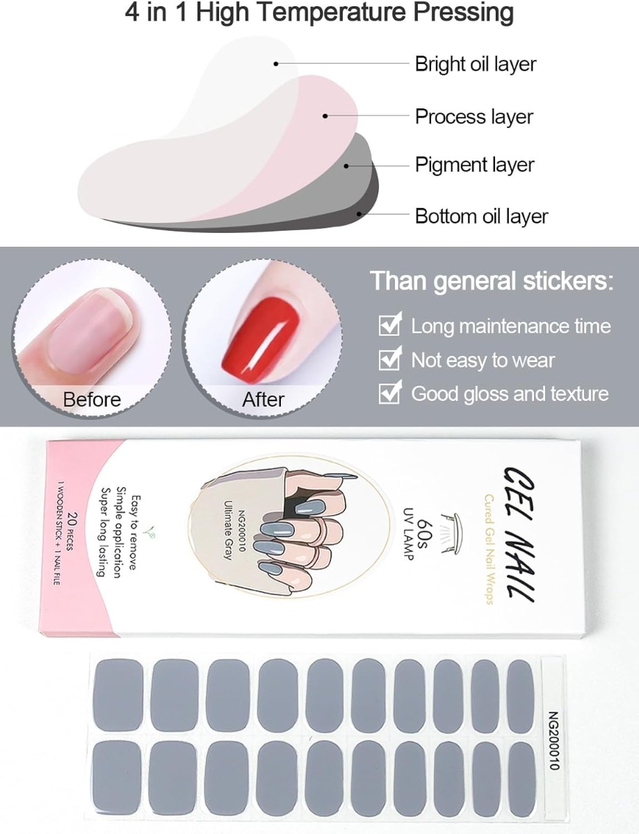 Queste strisce in gel sono già polimerizzate al 60%, il che le rende rapide da indossare: basta applicarle sulle unghie e completare la polimerizzazione con una lampada UV/LED per 60 secondi, ottenendo un effetto duro, lucido e resistente fino a due settimane. Inoltre, sono sicure per le unghie, offrono una protezione contro la fragilità e non si danneggiano facilmente.